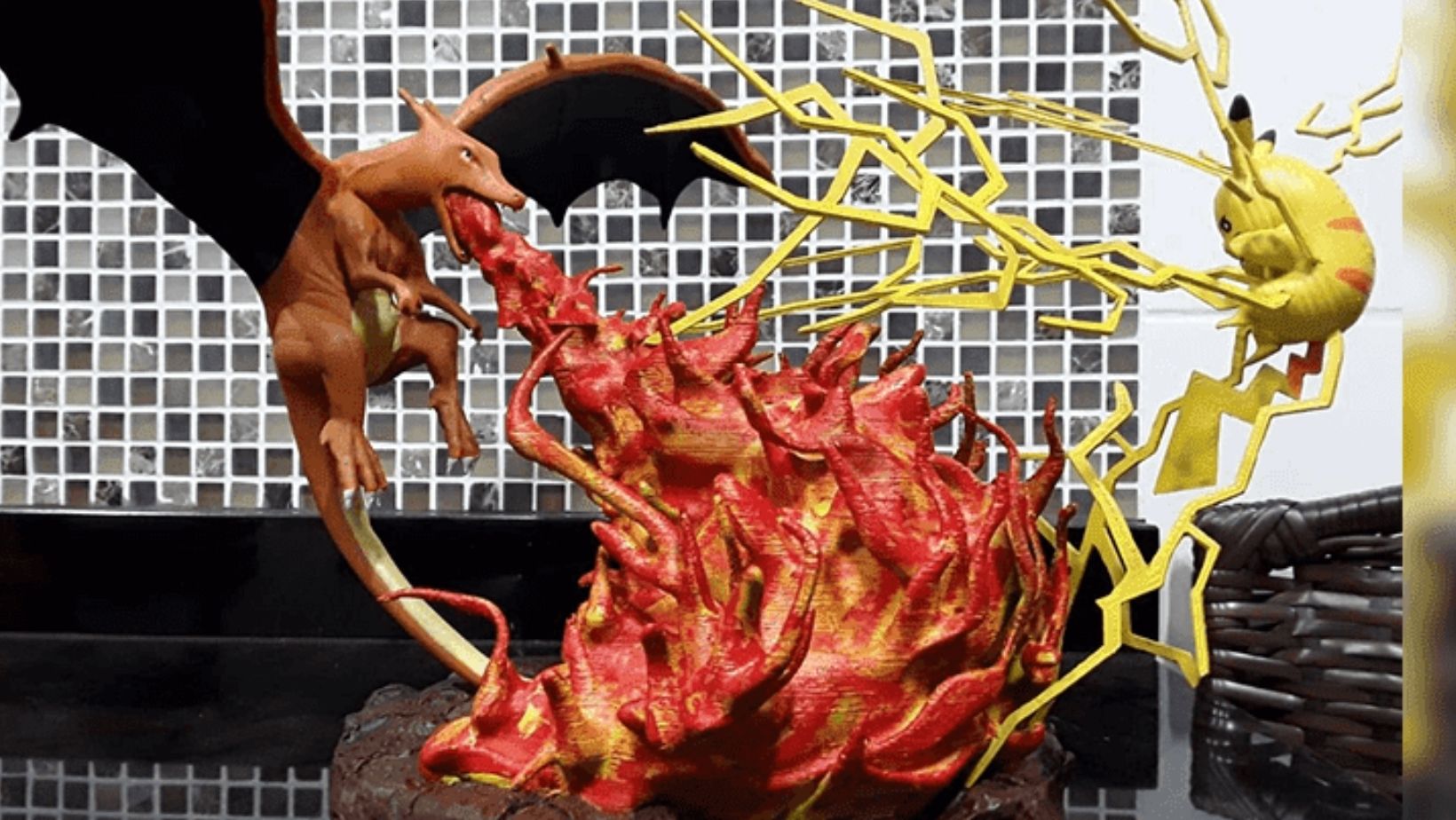 A scene of Pokemon Charizard fighting Pikachu is one of the fun 3D printing projects you can add to your collection. Both characters that accompanied Ash Ketchum met in the arena to battle, and you can download these Pokemon STL files to depict their powers.